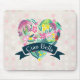 Ciao Bella Cute Floral Heart on Pink Circles Mouse Pad