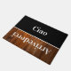 Simple text design in Italian in wood look and solid black .Ciao - this is the famous Italian way to say Hello and Arrivederci is a way to say Good-bye .Modern design by lumirala .