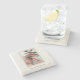 The coasters are gorgeous, a quality feel and heavy weight. They look like a precious archeological find. A rustic stone juxtaposed with a modern floral black and white print. I like the way the print goes slightly imperfect on the cut stone edges giving them a kind-of natural beauty.