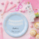 This minimalist and modern Cielito Lindo baby shower paper plate features a baby blue background with a delicate white Talavera border frame and a cute Papel Picado bunting banner. You can personalise this design by clicking on "Personalise this template" or if you wish to change the font, colours or arrange the design elements in a different way you can click on "Edit using Design Tool".