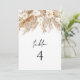 This table number features bohemian dry pampas grass, earth tone florals, and a simple script font. Easily edit the table number and add 'quantity 1' to your cart. Change the number and repeat for all of your tables. This table number is the perfect addition to your boho desert wedding, baby shower, bridal shower, or any other special event.