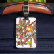 I was happy with the acrylic tag but it came with a thin leather strap to attach the tag to luggage (like a cat collar). I replaced the strap with a metal ring off of a key ring as the leather strap would come undone or break easily as luggage is sometimes handled without much care by airlines. Printing is great. Colours and positioning of the design I put on the tag were perfect. Very pleased.