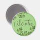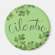 A classic round Refrigerator Magnet that displays illustration of cilantro spice with green leaves and inscription. Ideal for your kitchen decor or magnetic containers.