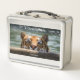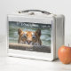 This is a standard metal lunchbox that appears to work just fine. We designed this box ourselves with an uploaded photo and custom text on the front and back. It looks absolutely beautiful except the front of the lunchbox is not centered like it shows in the photo. The print borders don't align with the inset flat part of the box where the preview photo online showed it perfectly centered in there. The back looks nice and centered though.