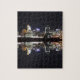This stunning reflected image, taken form Covington, Kentucky, is of Cincinnati, Ohio and its bright, lit-up downtown skyline with reflections on the water of the Ohio River.