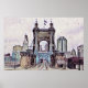 The John A. Roebling Suspension Bridge is an 1867 bridge which connects downtown Cincinnati with Covington, Kentucky. This watercolor painting of this civil engineering landmark is inspired by the southern side, in Kentucky looking into downtown with a bus coming towards us.