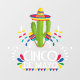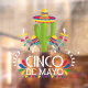 Cinco de Mayo with gold border with a floral Mexican folk pattern cactus wearing a sombrero with maracas.