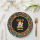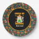 A cute kitty celebrating Cinco de Mayo day with maracas, and a sombrero with a text saying Cinco de Meowo. A perfect fiesta paper plate for the Cinco de Mayo fiesta.