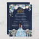 Cinderella Navy Blue Floral Princess Quinceañera Invitation