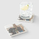 The coasters are gorgeous, a quality feel and heavy weight. They look like a precious archeological find. A rustic stone juxtaposed with a modern floral black and white print. I like the way the print goes slightly imperfect on the cut stone edges giving them a kind-of natural beauty.