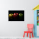 A hyper realistic cinematic macro shot of three ripe apples—one red, one green, and one yellow—suspended in a dramatic dark void. A striking art print perfect for kitchens, dining rooms, and modern home décor. ❃ 𝗖𝗢𝗣𝗬𝗥𝗜𝗚𝗛𝗧 ❃