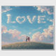 Epic love stories deserve epic wrapping. This cinematic design features a couple standing on a grassy hill, gazing at a majestic sky where clouds have formed the word "LOVE." The warm sunset hues and vast landscape convey a sense of "forever." It is the perfect choice for significant milestones—proposals, engagements, or celebrating a deep, long-term bond