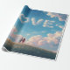 Cinematic "Love" in the Sky & Couple Sunset Scene Wrapping Paper