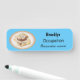 This badge looks professional and it's in keeping with my branding. The magnetic attachment is strong and stays in place all day. The quality of the materials and the colors were exactly as pictured. I couldn't be happier! The printing is clear and easy to read