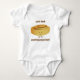 Baby Bodysuit with a smiling, cinnamon roll that is standing between the words “Let’s Rock and Cinnamon Roll!”. The words can be customised.
