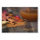 cinnamon sticks and fall leaves on wood with apple cider drink