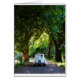 Cinquecento down a treelined drive.