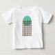 This baby t-shirt has a mid-century modern design with a sea-green circle with brown diamond chains.