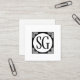 A square business card template with initials placed inside a decorative box. In this version the initials are in the Integrity bold font. Name and profession/job title along with telephone, email and website address in black on the reverse side on a white background, using variations of the Matt Antique font.