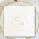 Add a sophisticated, modern detail to your wedding with these personalised foil-stamped napkins, featuring your initials enclosed in a sleek, minimalist circle frame. The clean geometric border draws the eye to your monogram, giving your table décor a polished, custom feel.