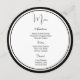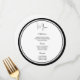 Menu Card is shown in the white basic matte paper in the circle shape with script and standard text in black.