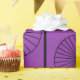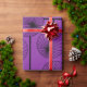 This wrapping paper has a mid-century modern design of circles with starbursts inside connected together with black lines, looking like a mobile.