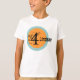 A circle of teal and orange with a black number for the birthday boy or girls age and a place you can add their name! Perfect for your child's 4th birthday celebration!