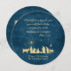 The classic scene of Baby Jesus in a manger is accented with Scripture, your greeting and optional photos on these circle Nativity Christmas cards. A deep blue patterned backdrop accents light golden text and graphics. Personalise all of the wording and include 2 optional photos on the back of this design for additional keepsake style on your 2017 holiday greetings.