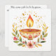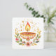 A vibrant diya burns at the heart of a floral wreath—its flame rising from a bowl etched in red, gold, and pink. Surrounding leaves and blossoms shimmer with golden flecks, forming a halo of warmth and devotion. This image captures the essence of Diwali: light as a blessing, beauty as an offering, and tradition as a living flame. The accompanying quote, printed on the reverse, offers a poetic reflection to carry the spirit of the festival forward.