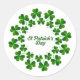 Sweet, circle of shamrocks with wording, St. Patrick's Day, is featured on this classic round sticker. This sticker is great to use for special mailings, decorating, scrap booking and more!