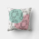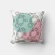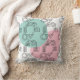 This throw pillow has a mid-century modern design inspired by Kandinsky of a circle of shapes formed by one continuous black line with seafoam and pink shapes as a background. If you like the design but prefer different colours, message me.