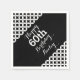 Bright modern white and black circular style birthday party or dinner paper napkins. Personalise with your name and birthday year and background colour of your choice. Currently reads happy 60th birthday Bailey. Designed by Sarah Trett.
