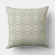 This throw pillow features a blue and brown circle pattern on a cream background.