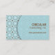 A grid of pale blue, brown and white concentric circles makes an arresting pattern on this business card that's sure to get attention. A light blue, slightly transparent circular shape holds the business name and main contact preference. The reverse reveals the pattern on the left to show off all the contact information against white on the right. A creative way to promote a marketing and communications business, a consultancy, interior designer or any creative occupation. Available in alternate colours with matching products.