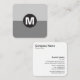 A business card template with a monogram letter placed in a circular spot of approximately 1 inch in diameter on the front. Company name, business type along with Name and other contact details on the back. This template is easy to customise by adding your own details or can be additionally customised, suitable for many types of business.