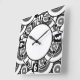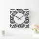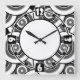 Circles and rings geometric black and white patter square wall clock