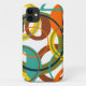 This phone case has a mid-century modern design of circles and semi-circles in orange, yellow, green, brown, and turquoise on a field of white. If you want the same design with different colours, message me.