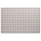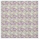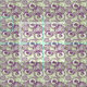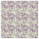 This fabric has a geometric design of circles decorated with lines and circles made of repeating dots in eggplant and green.