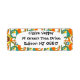 These return address labels have a mid-century modern design of circles and semi-circles in orange, yellow, green, brown, and turquoise on a field of white. If you want the same design with different colours, message me.