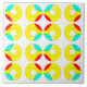 Rings rotate within rings over vivid yellow, aqua and red circles on a white background.