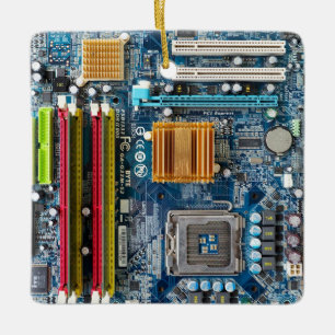 Cool Computer Circuit Board Blue Ceramic Ornament