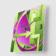 "Circuit Diagram" digital art print - gradient shapes in complementary colours of lime green and magenta