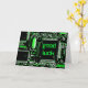 Modern design featuring a close up of a computer circuit board in green and black. greetings card with a customisable design for you to personalise with your own text, pictures and ideas. The text can easily be changed using the template provided or click the 'Customise It' button to make further alterations. Created using an original photograph and digital techniques by Jess Perry.