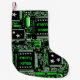 Modern design featuring a close up of a computer circuit board in green, white and black with an added festive touch. Stocking with a customisable design for you to personalise with your own text, pictures and ideas. Created using an original photograph and digital techniques by Jess Perry.