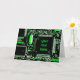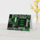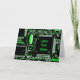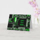 Modern design featuring a close up of a computer circuit board in green and black. greetings card with a customisable design for you to personalise with your own text, pictures and ideas. The text can easily be changed using the template provided or click the 'Customise It' button to make further alterations. Created using an original photograph and digital techniques by Jess Perry.