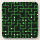 A digital abstract pattern resembling a stylised computer circuit board, in glowing green and black.