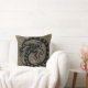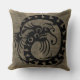 Stylish throw pillow features a circular dragon silhouette centred on a sepia texture background.