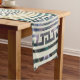 This runner is lovely and brightened up my timber table beautifully, as in the advertised photo. The design is perfect and the colours make it a versatile addition to the home decor with white, black and the different green-blue hues. The print is perfect and clear with solid colour