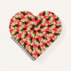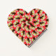 Pictured in a circular design are Chestnut horses with Frangipani flowers on red.