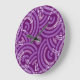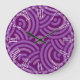 A unique bold graphic purple coloured wall clock. This original pattern by Sarah Trett is a play on interlinks with circles. Would look great in a purple bedroom or lounge, kitchen or bar.